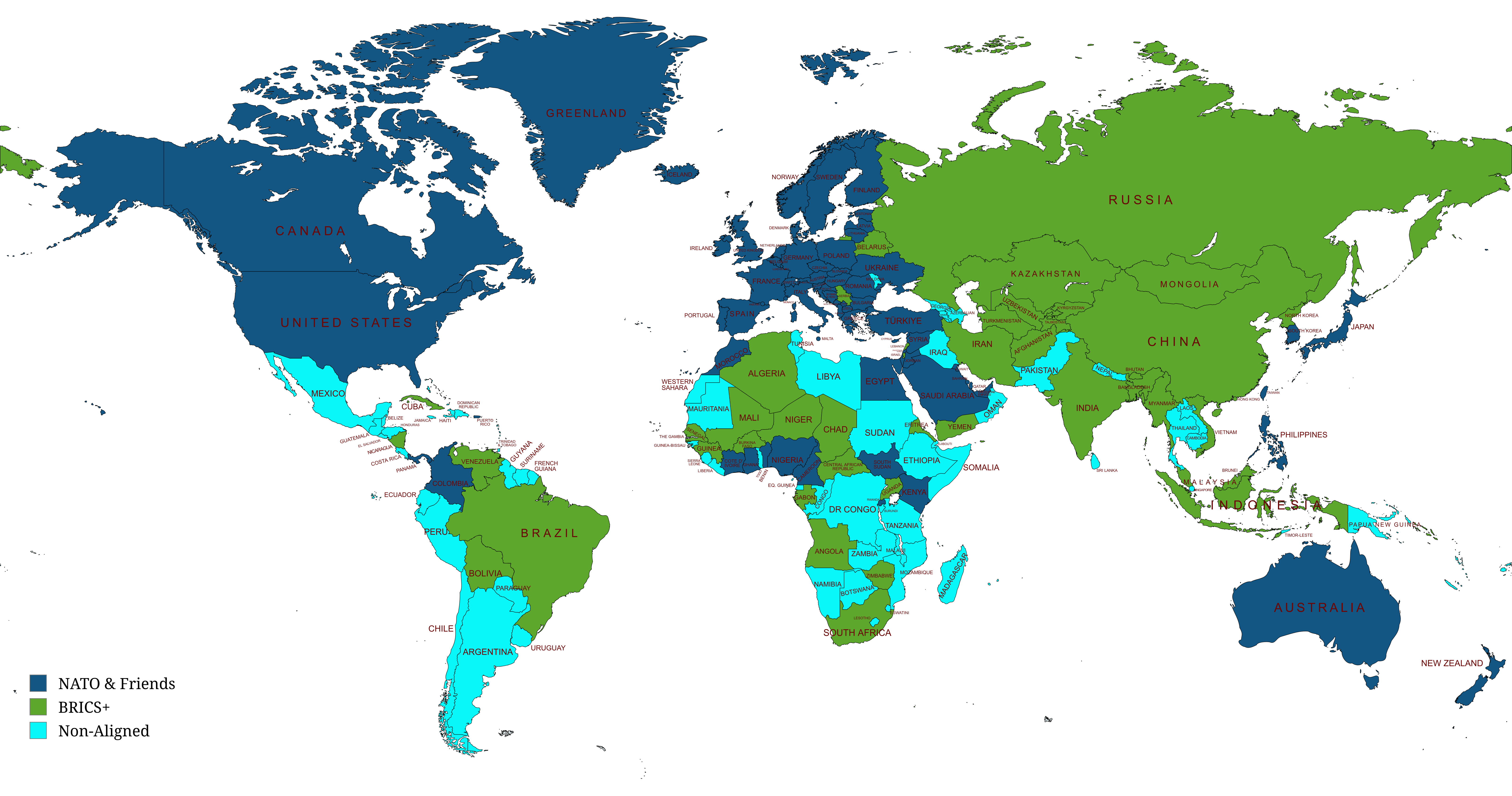Some countries don’t fall decisively into one category. I’ve put these countries in a separate Non-Aligned category. They are prime arenas of competition for NATO & Friends and BRICS+.