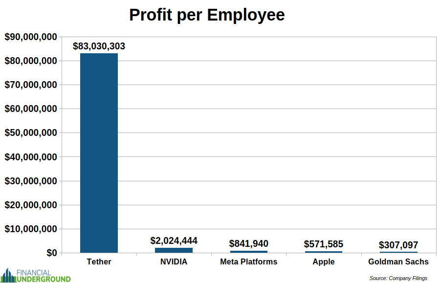 When it comes to profit per employee, Tether is the most profitable company in the world. It may even be the most profitable business in the history of business.