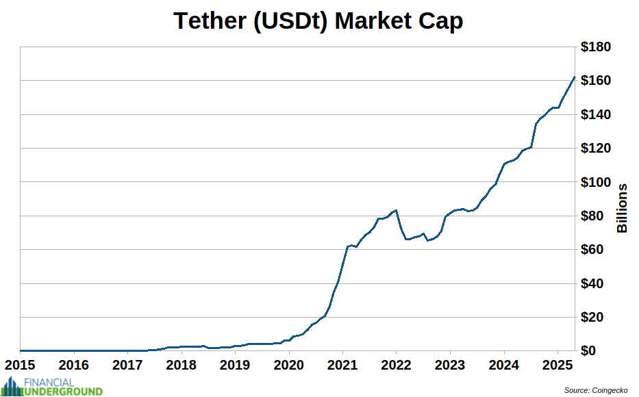 So yes, stablecoins like Tether offer meaningful support to the Treasury market and the US dollar. But that support hasn’t fundamentally changed the US government’s bleak financial outlook—driven by runaway spending on warfare, welfare, entitlements, and mounting interest on the national debt.