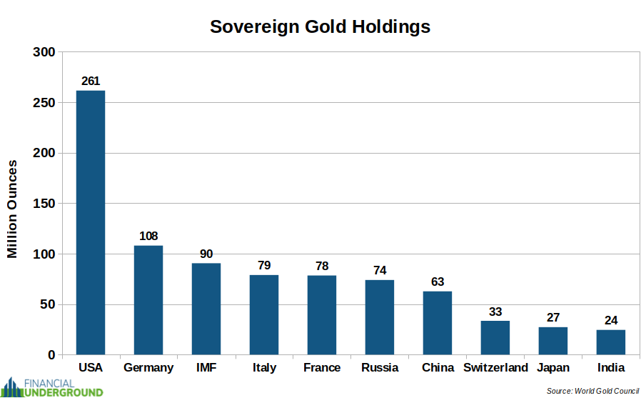 Central banks and governments are the largest holders of gold in the world. Together they own over 1.1 billion troy ounces of gold out of the 6.6 billion that exist above ground.