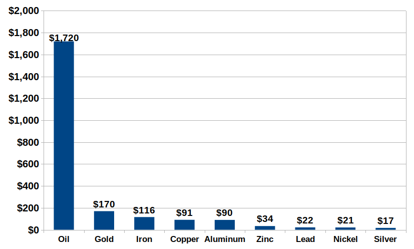As you can see in the chart below, it dwarfs all other major commodity markets combined. The annual production value of the oil market is ten times bigger than the gold market for example.