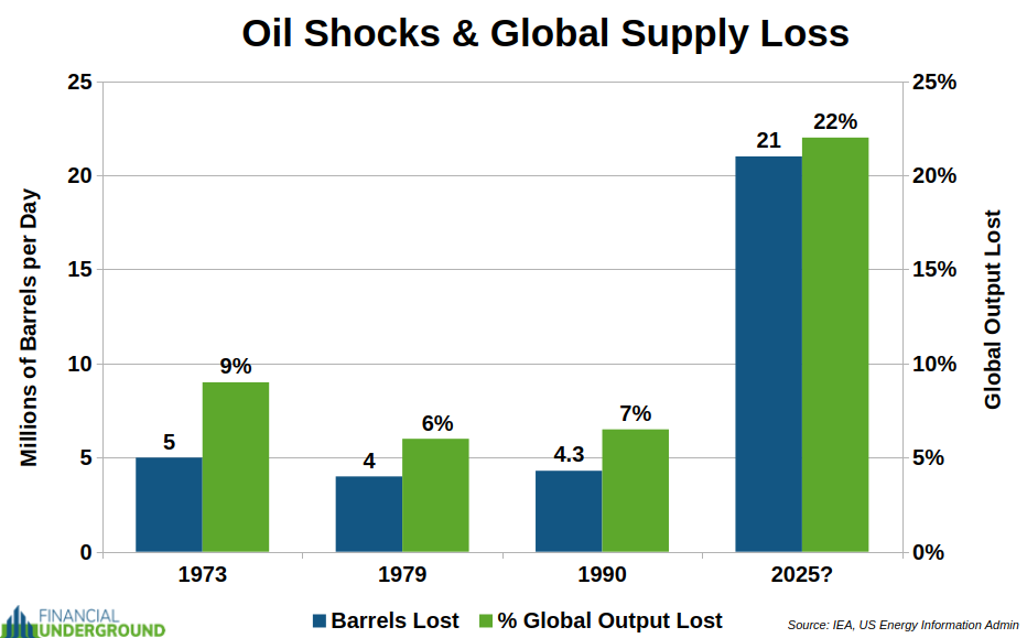 As the chart below shows, this would be the largest oil supply shock in history. By far.